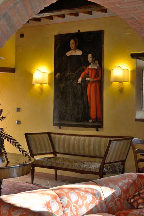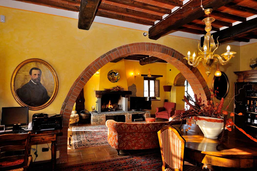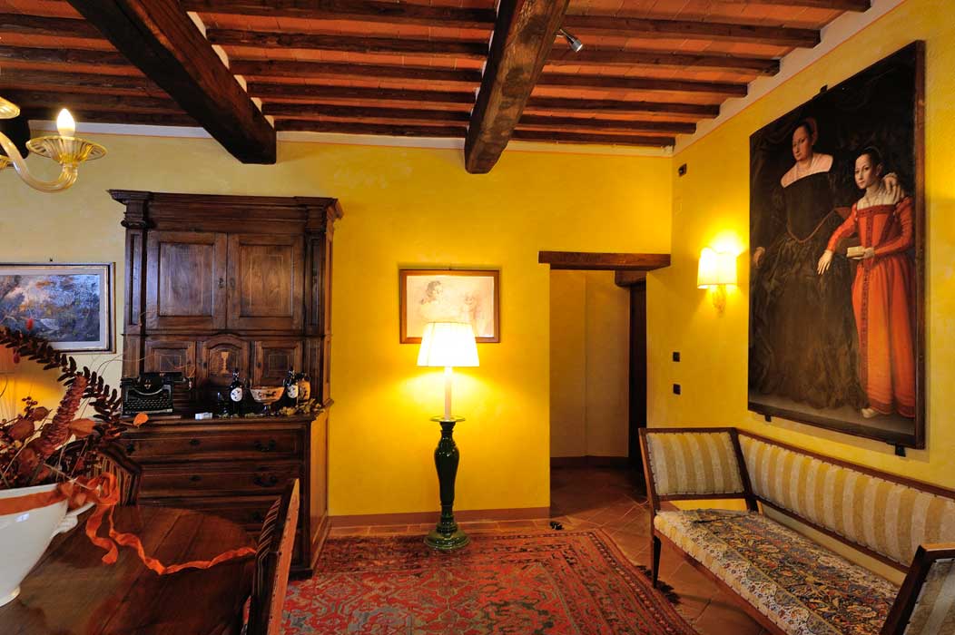 Al piano terra si trova un salotto di 70mq con angolo camino, divani e mobilia d'epoca. Collegati al salotto ci sono il soggiorno, con un grande tavolo in legno da 10 posti, e la cucina con ampio spazio per preparazione vivande. Vicino al salotto si trova una camera con due letti singoli e bagno privato.