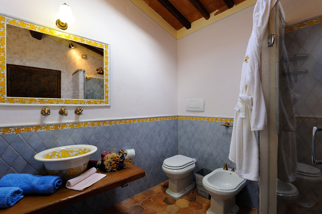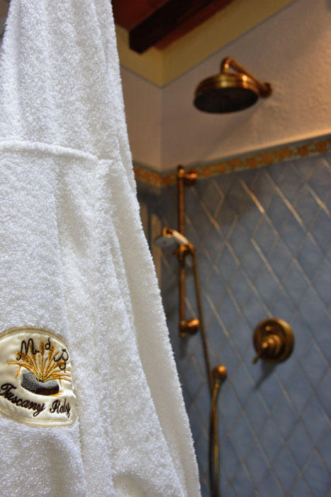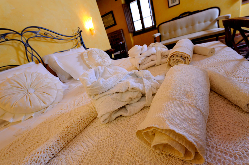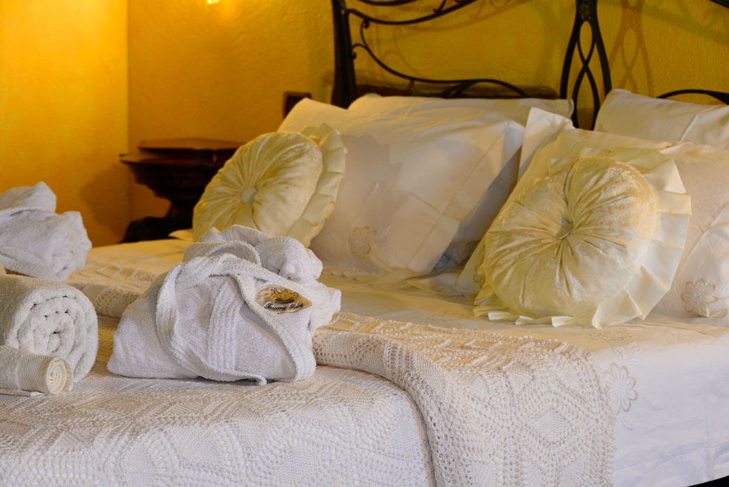 Ciascuna camera viene servita da lenzuola e corredo di biancheria da bagno composto da asciugamano piccolo, medio e grande, accappatoio e telo da piscina (nei mesi estivi), per ciascun ospite.